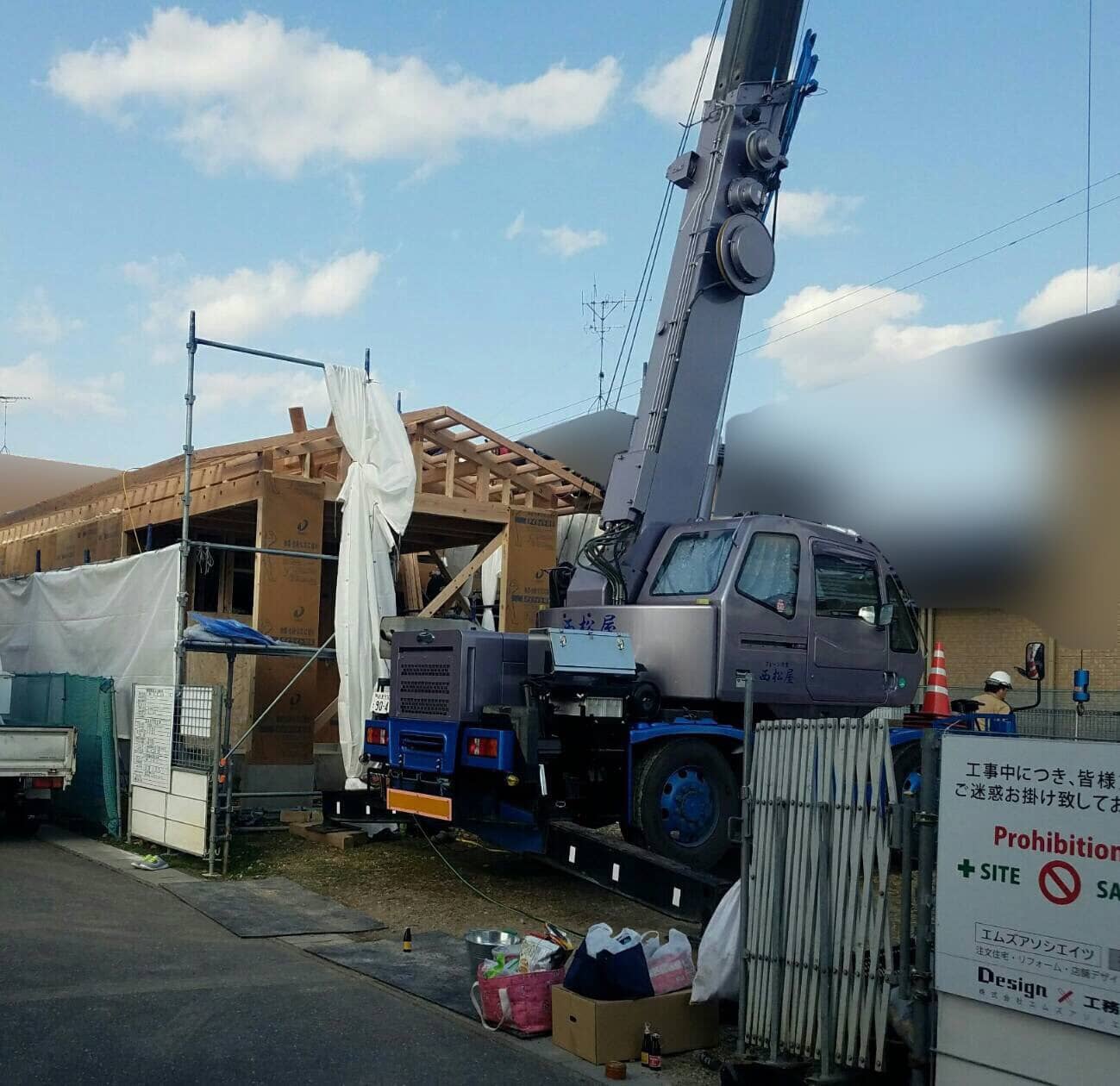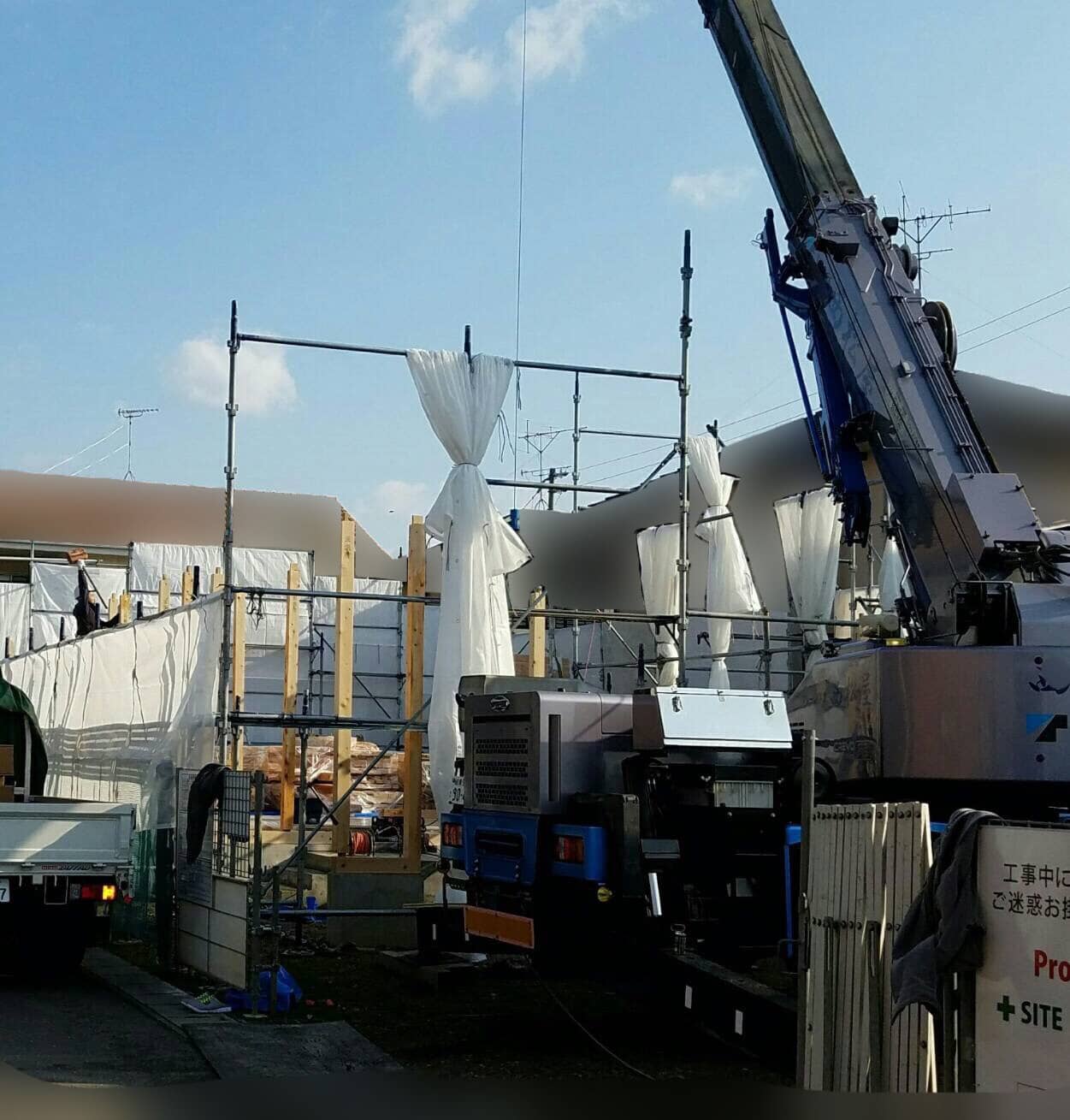 先週、上棟しました。 風が強かったですが、一日晴れていて良かったです。 朝8時頃に行くと すでに作業を開始されていました。 お昼頃にはすでに家の輪郭が! 早い! 今住んでいるアパートと近いので 徒歩で行ったり来たり、 一日中うろついて見学させていただきました。 17時頃に終わり 大工さんに 一言だけの(笑) 挨拶をさせていただきました。