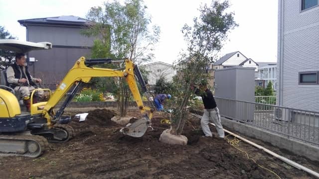 うちの敷地は間口が狭いので大きな木は先に入れておくとのこと![]()