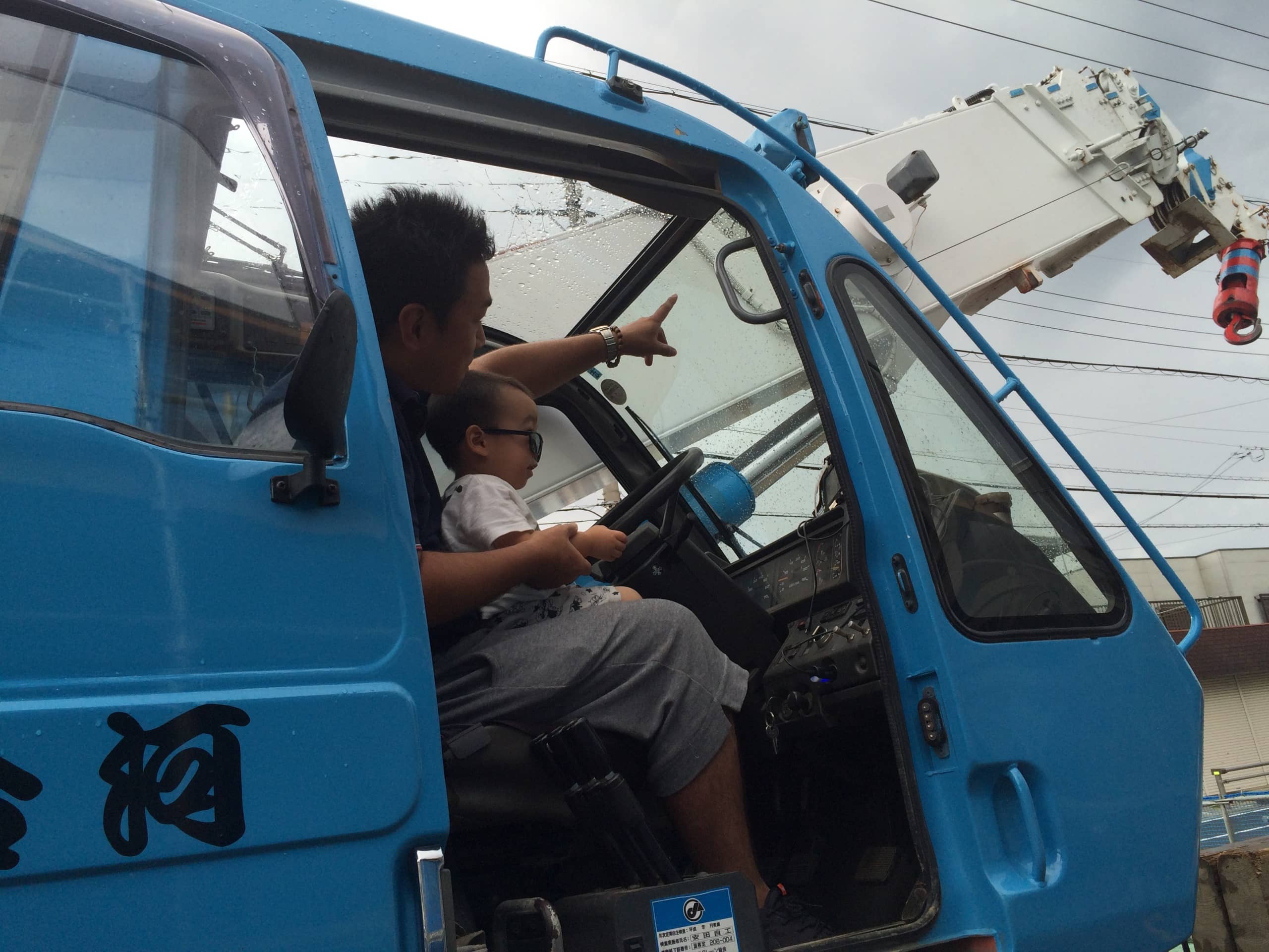 子供がはたらくくるまが大好きでクレーン車に釘付けだったのに気付き、なんと運転手さんに乗ってもいいか交渉してくれたのです!