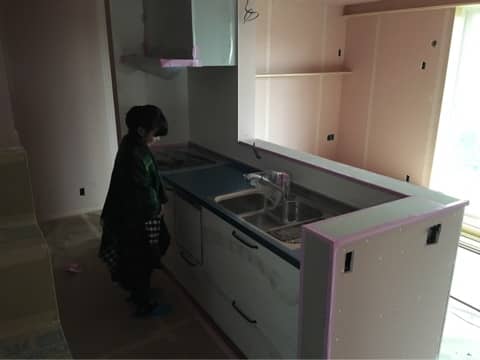 内部ではキッチンがコーキングも乾き、そのベールを脱ぎました!