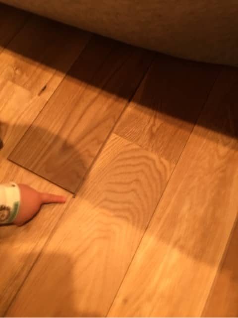 なんと、ホットカーペットの真下部分の床材に、ものすごいすき間ができてしまっていたのです。。。