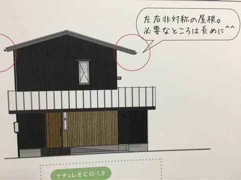我が家の屋根は南側が飛び出した、左右非対称な屋根です。