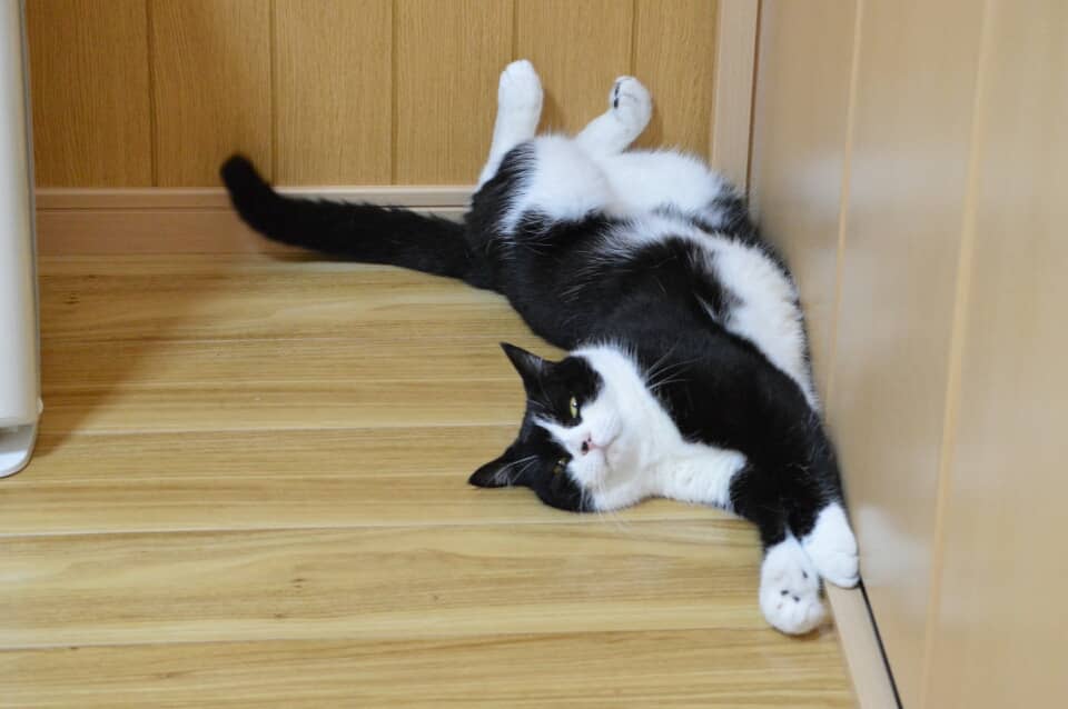その出窓っぽくなっているところが、ちょうど猫ちゃんたちがくつろぐのにもってこいの幅で!