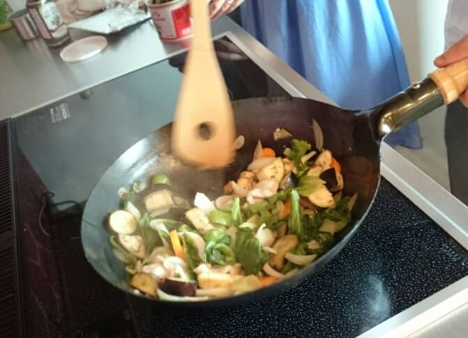 別の方は、野菜炒めとポークステーキを作られていました。