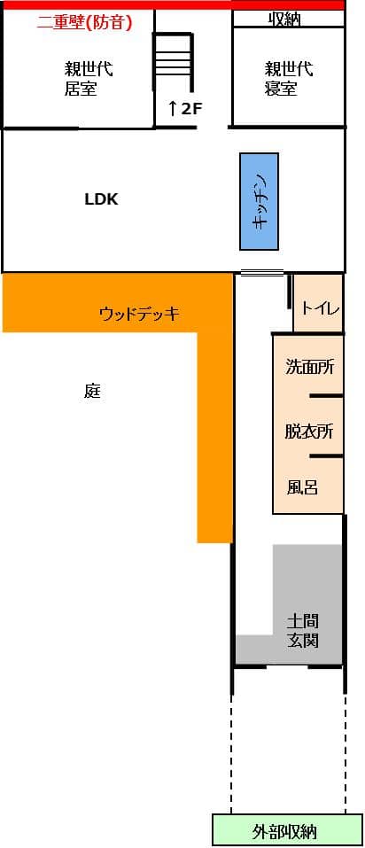 →風呂・トイレなどの水回り関係を南側に固めることで、