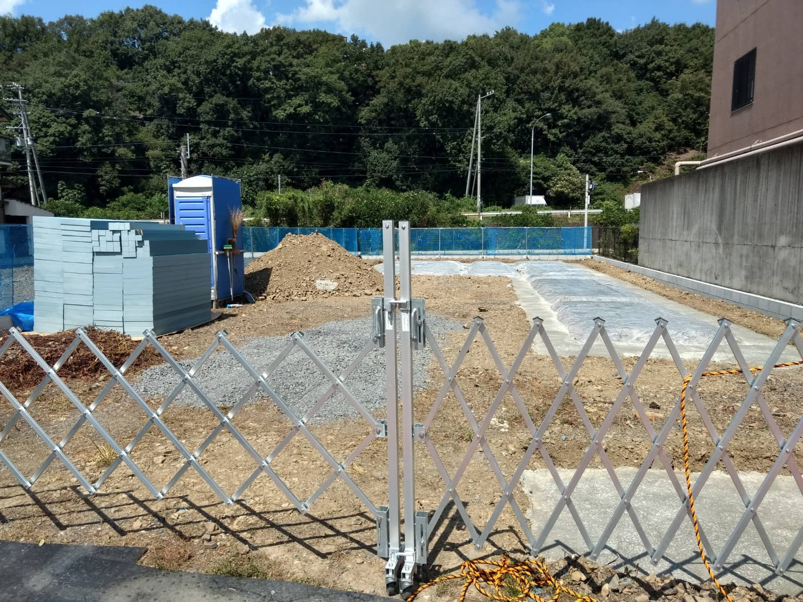 既にコンクリートが入っていたり、入り口が柵で仕切られたり、建設用と思しき材料が積まれていたり。