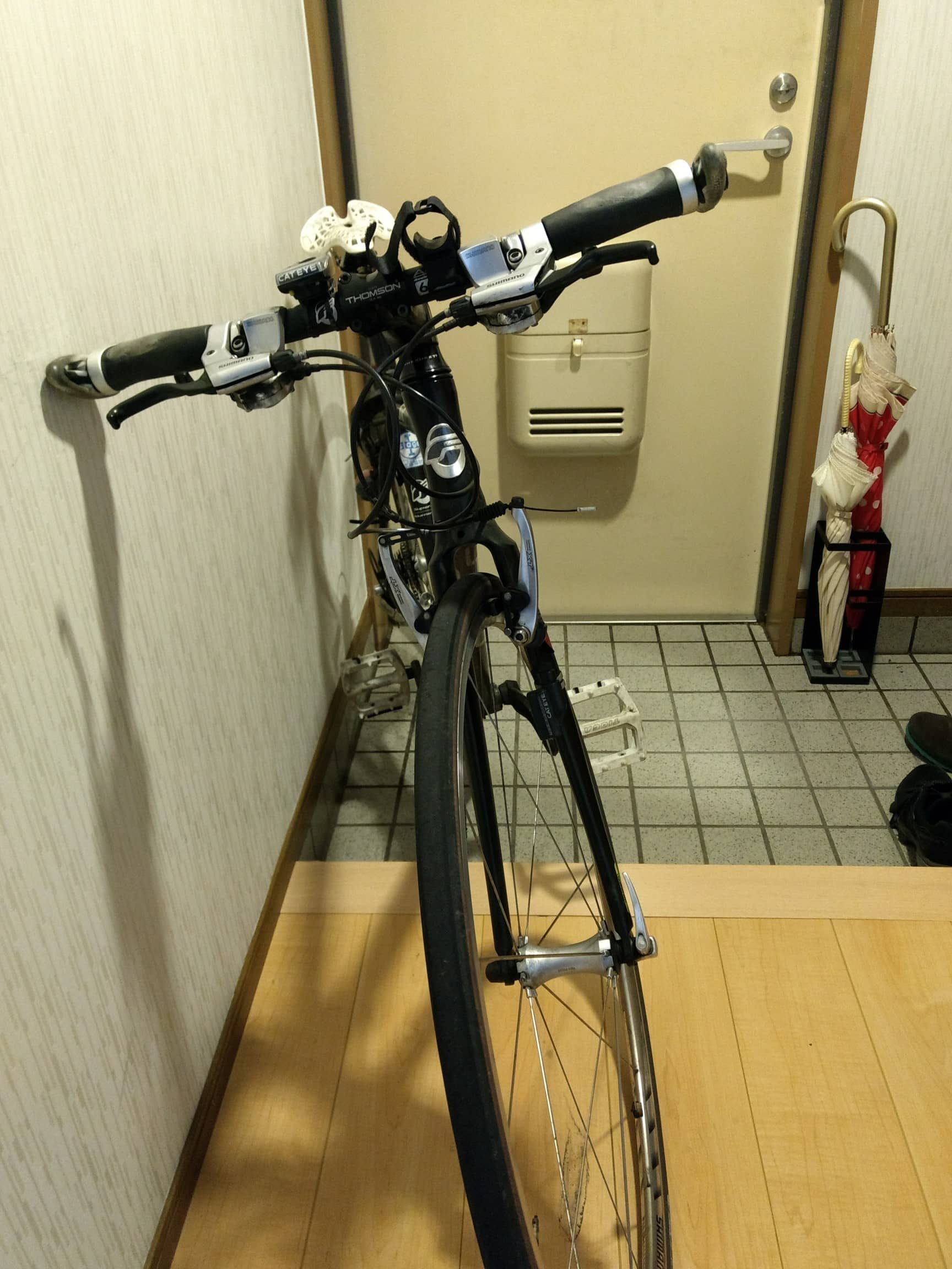 大切に使っている自転車なので、やむを得ずこの位置になりました。