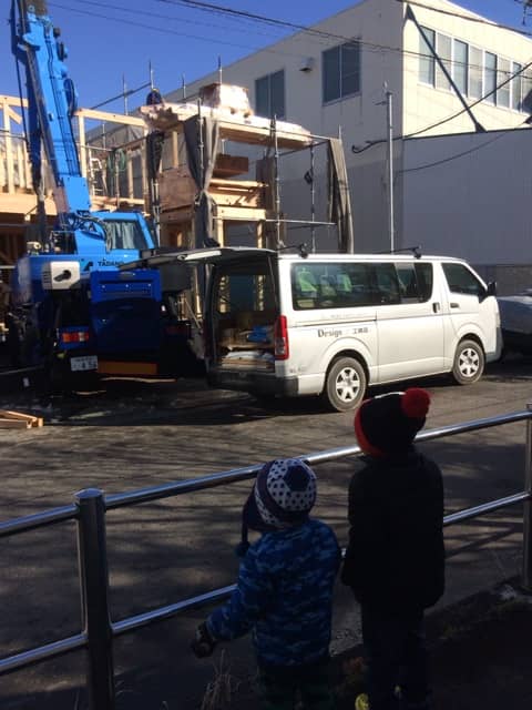 1時間程、大工さんの作業に釘付けになっていると、妻と子供達も遅れて合流。