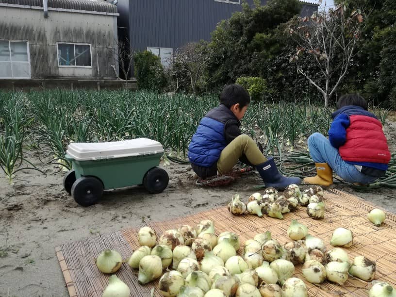 浜松では、家族で畑仕事のお手伝いをさせてもらっていました。今が収穫時期の新玉ねぎは、本当に美味しいです!子供たちも貴重な体験をさせてもらいました。