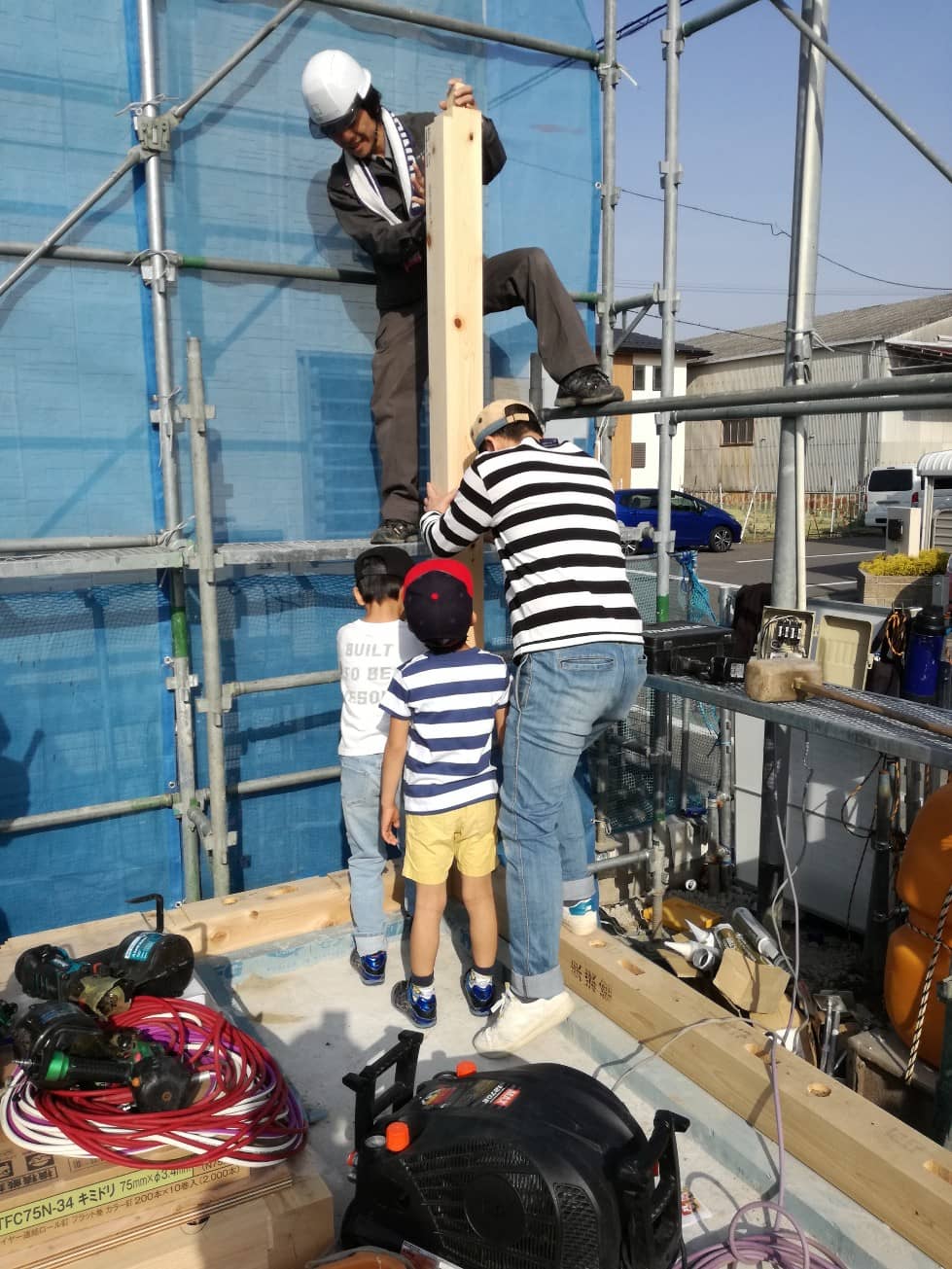 大工さんの匠の技、クレーン屋さんと大工さんの息の合った連携プレー。春休みということもあり、今日の舞台を家族と共に見れたことが何より嬉しかったです。在来工法にして良かったと改めて感じました。