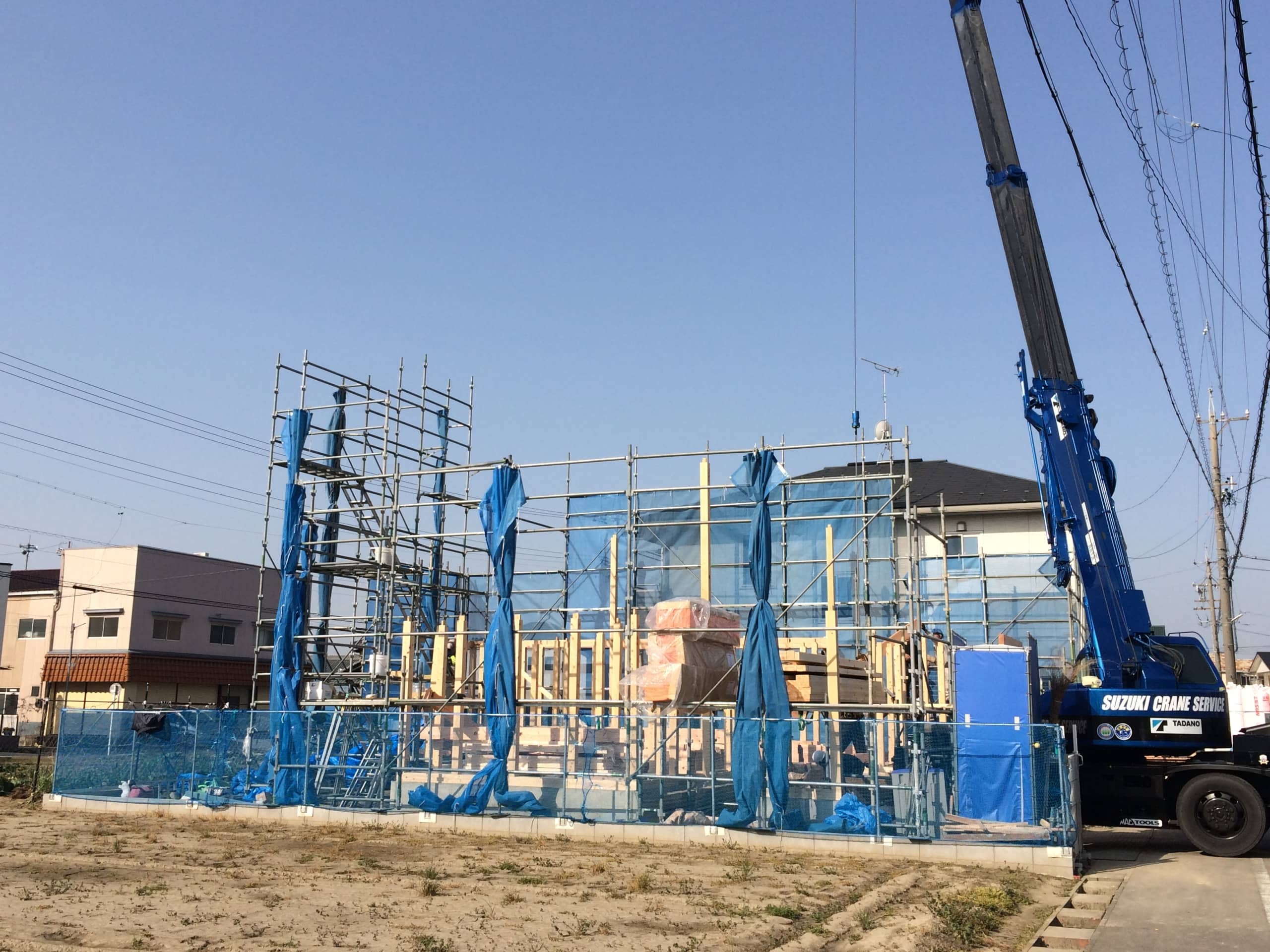 晴天で、風も無く、天候に恵まれた上棟となりました。![]()