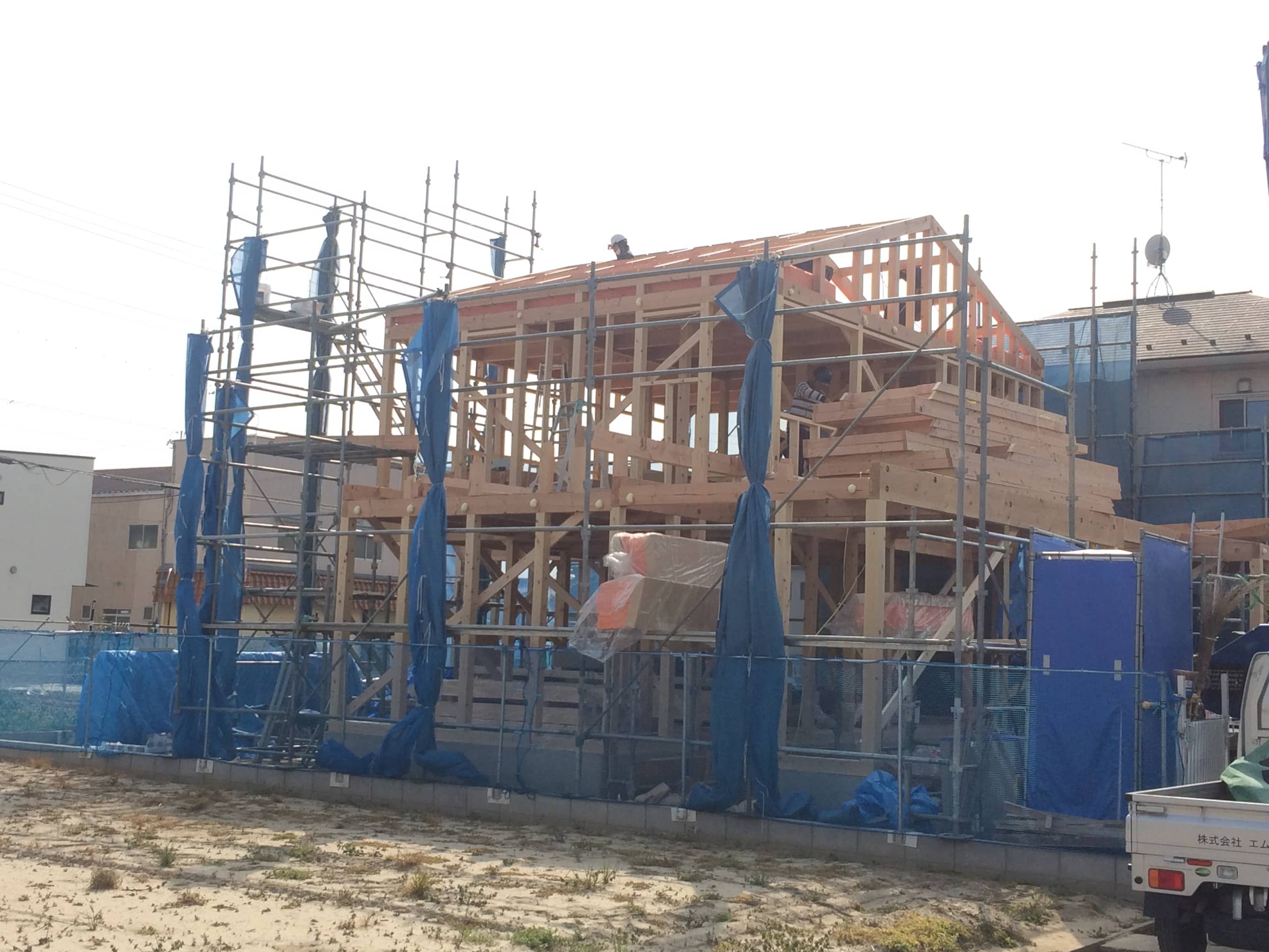 ↓上棟 終盤 1日で屋根まで上がりました。![]()