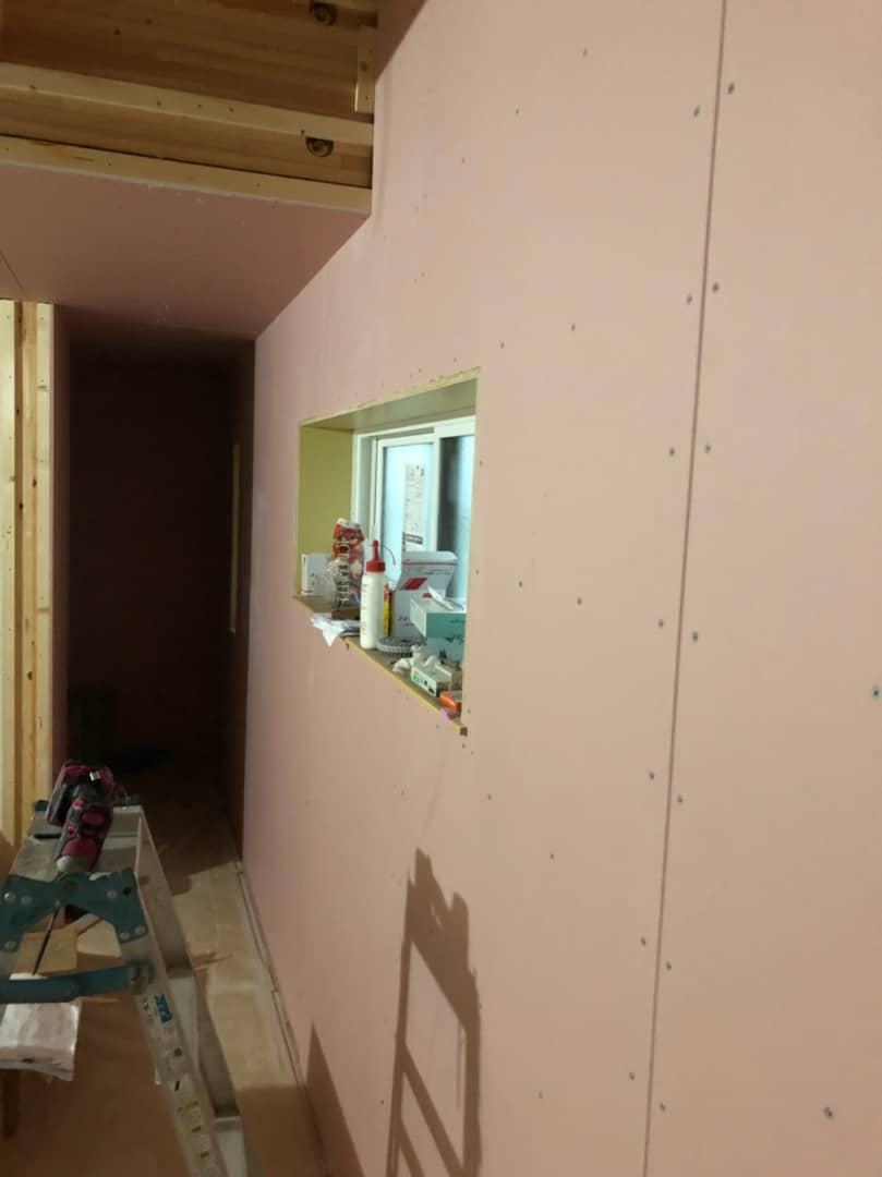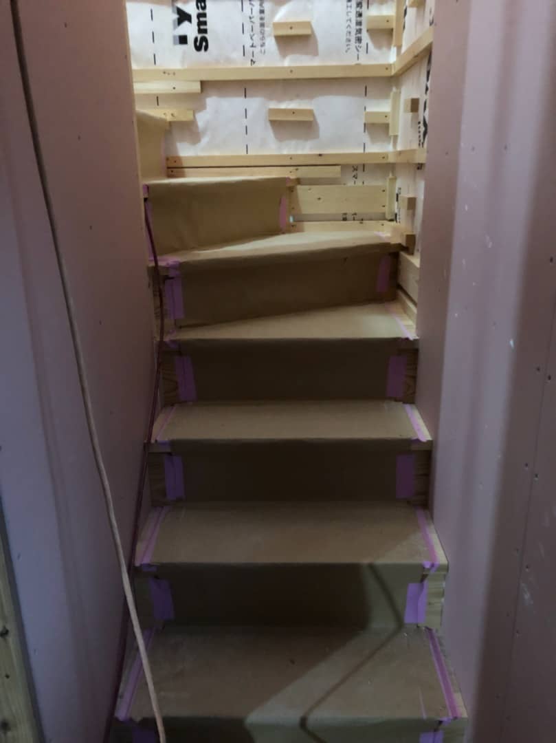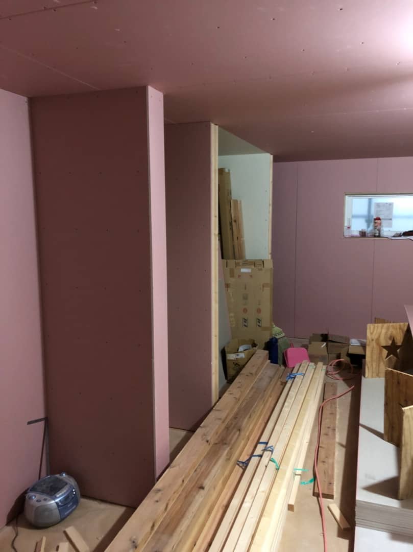 ちょいと家の中を覗いたら、壁貼り作業をされていました。