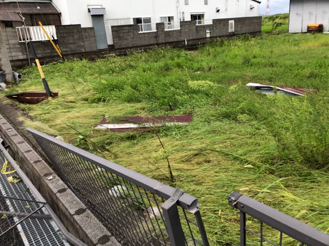 アパートの隣にトタン屋根の建物があり、台風の風がトタン屋根を剥がし、たくさん飛び回ってました。