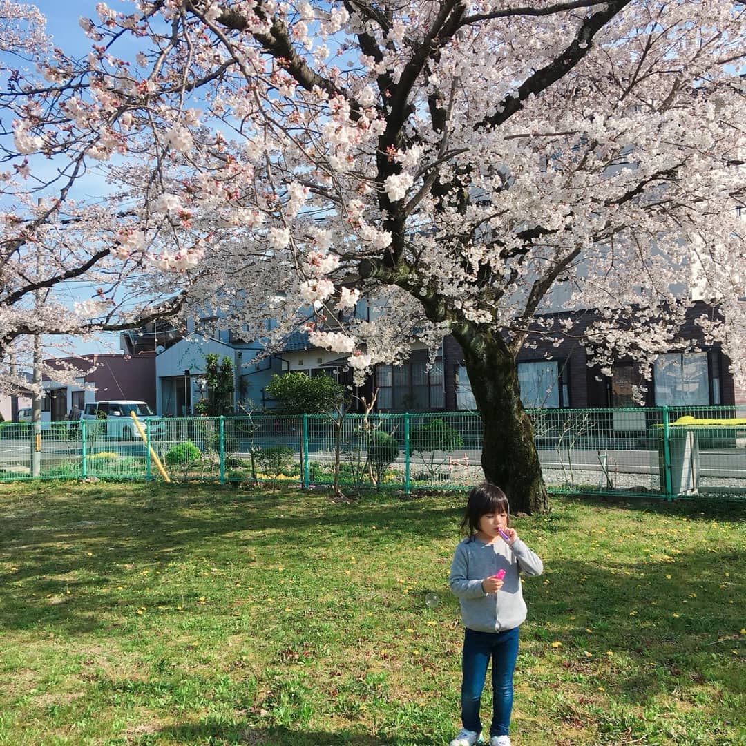 今年も裏のグラウンドの桜を楽しみながらのシャボン玉をしたり…笑
