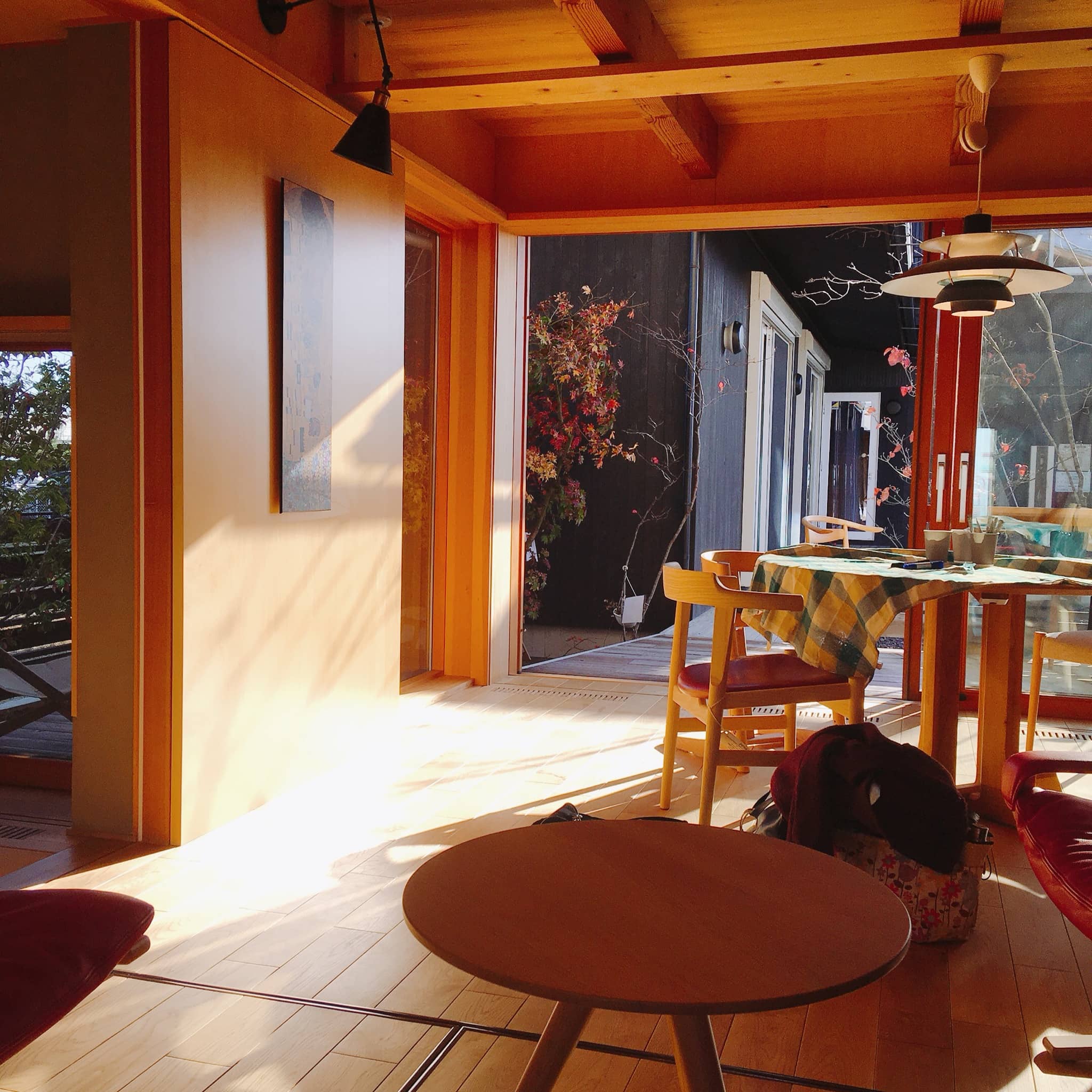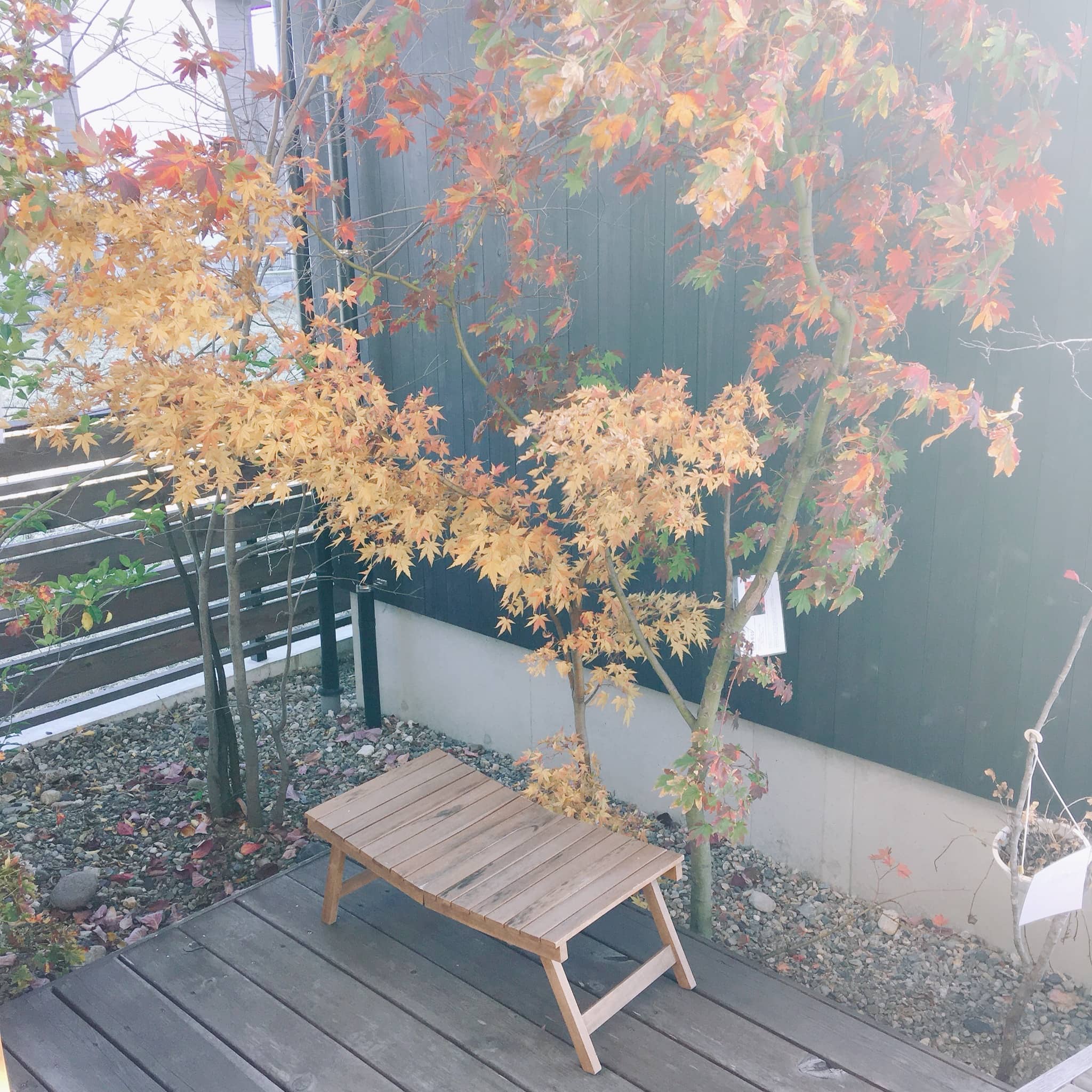 紅葉も綺麗で、ウッドデッキから事務所への繋がりも開放的で良いですね~!