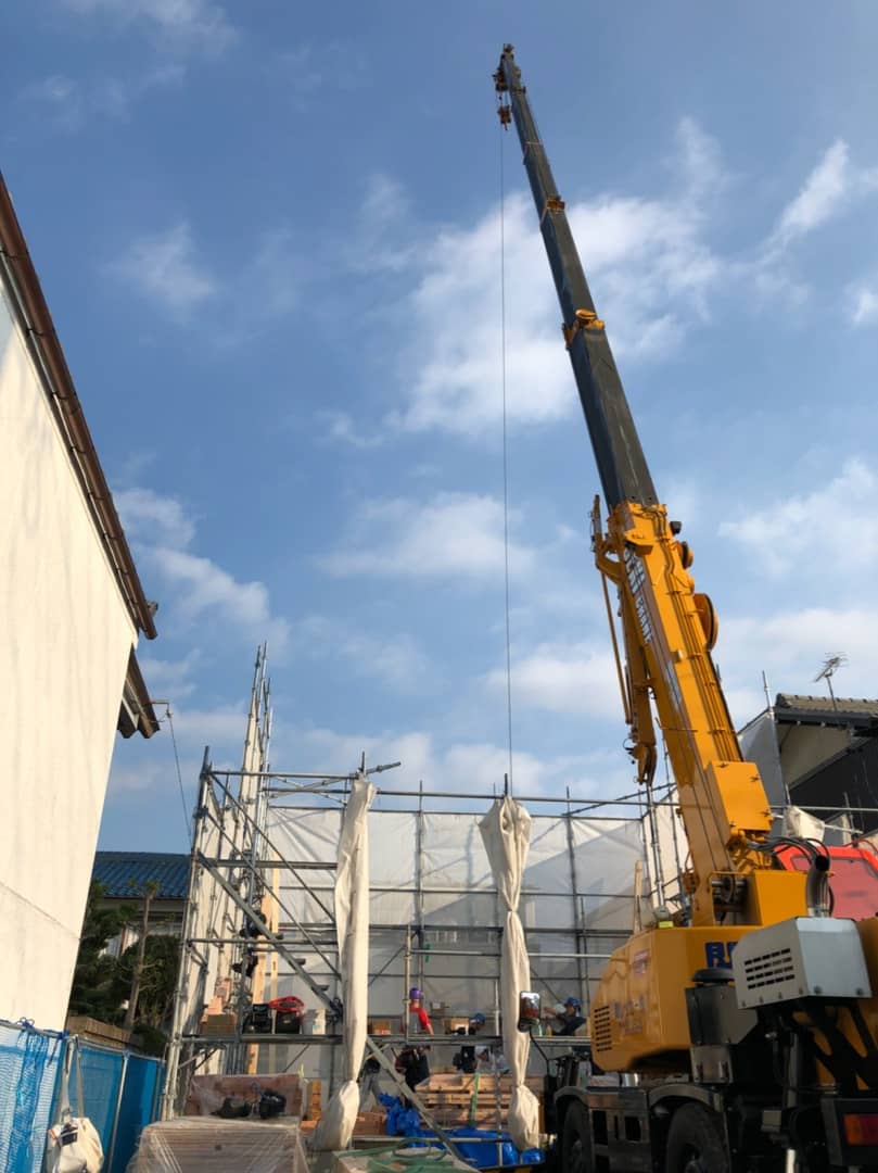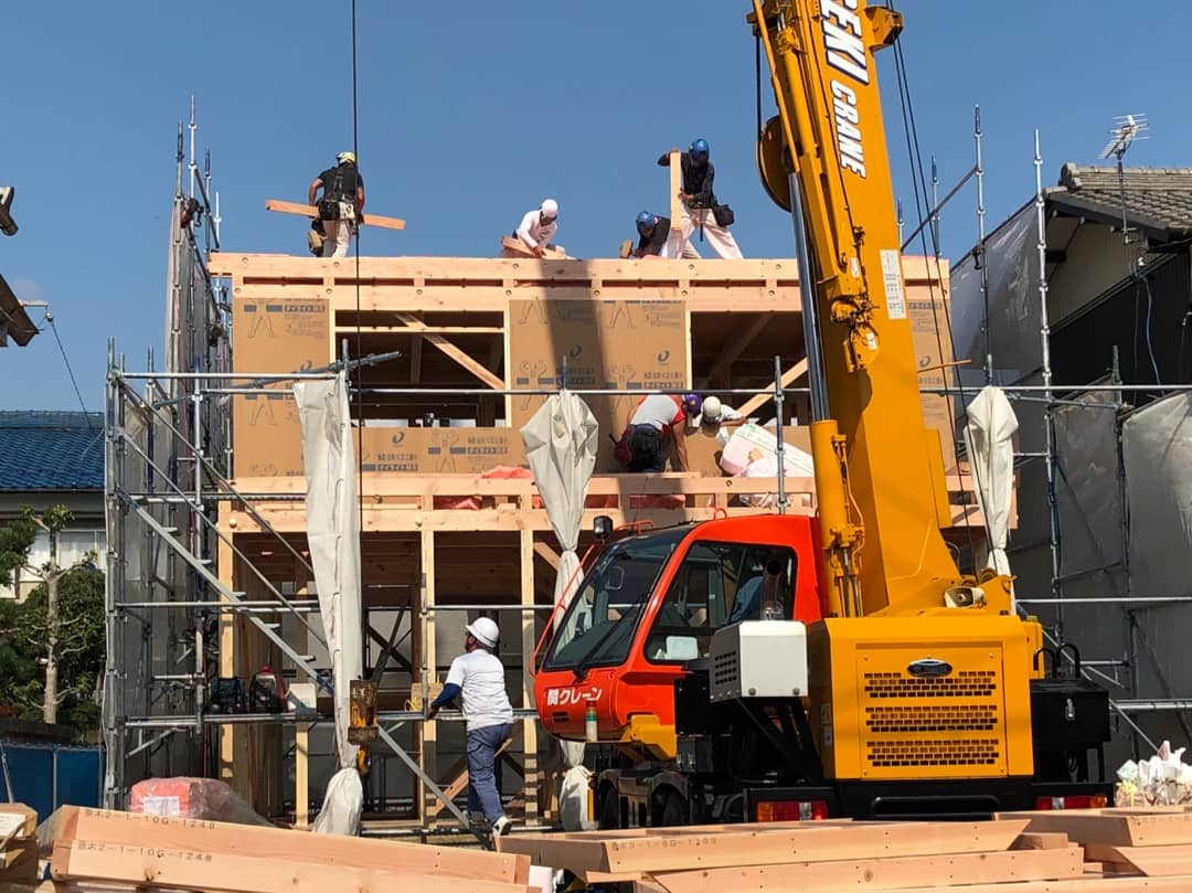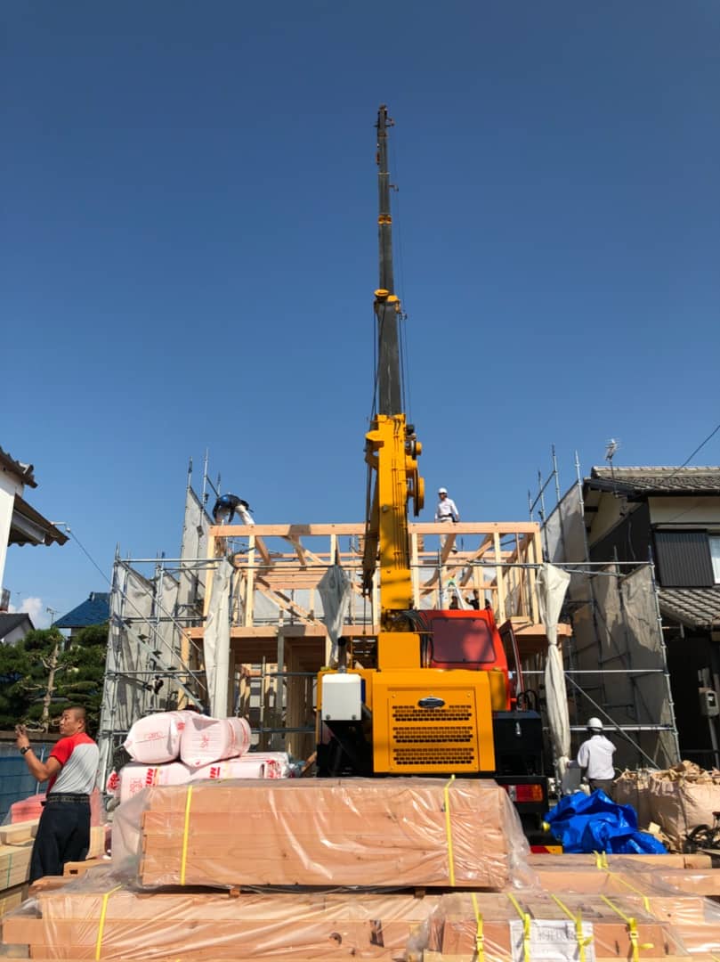 投稿日:2018.10.20 最終更新日:2018.10.20 岐阜市 N 様 上棟 昨日上棟しました 前日からソワソワワクワク 朝の8時頃。 娘はクレーン車に大興奮 10時半頃。 もう家っぽくなっとる ほんと、なんとも手際の良い事ったら。 あんな重い柱をひょいひょいとさ 見る見るうちに建ち上がって行くので、目が離せません 午前中の休憩の時、エムズのニューフェイスさんと一緒に2階に上がらせてもらいました。 足場登ったり梯子登ったり、年甲斐もなく浮かれてしまいました。 天気良くて何より。 カッコいいヘルメットあった。 椅子持ってきて一日中見ていたいくらいですが、 うちの2歳児がガタガタ言い出すので止む無く退散 12時くらい。 ここで私は出勤のため退散残念 何度も見た紙の上のお家が、目の前に出現しようとしてます。 モノを作るお仕事って、こんなに人をワクワクさせるお仕事ってほんといいなと羨ましく思いました。 ほんとにほんとにありがとうございました この記事をシェアする