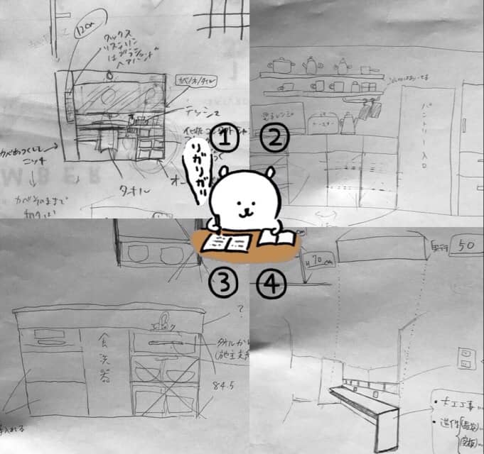 ③キッチンはどうすると良いのか悩んでいましたが、亀山さんに見せて貰ったO様邸の設計が素敵だったのでほぼパクろっかなと