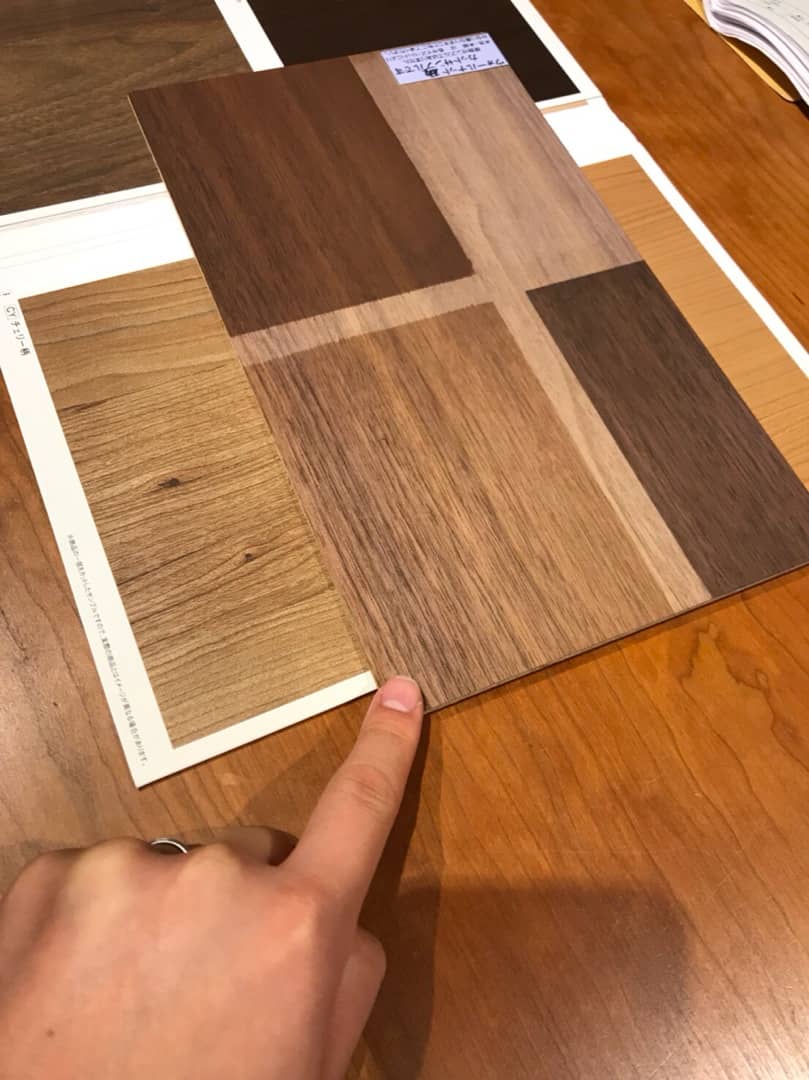 突板(つきいた)という、合板の上にスライスした木材を貼り合わせるものを採用。