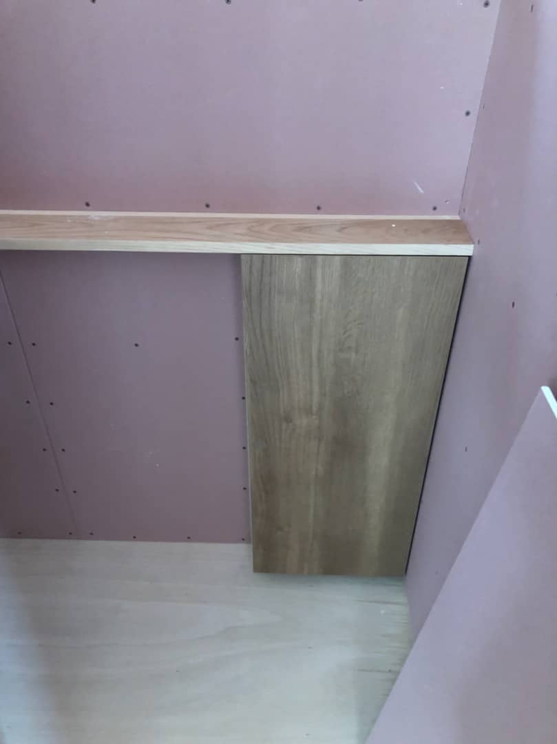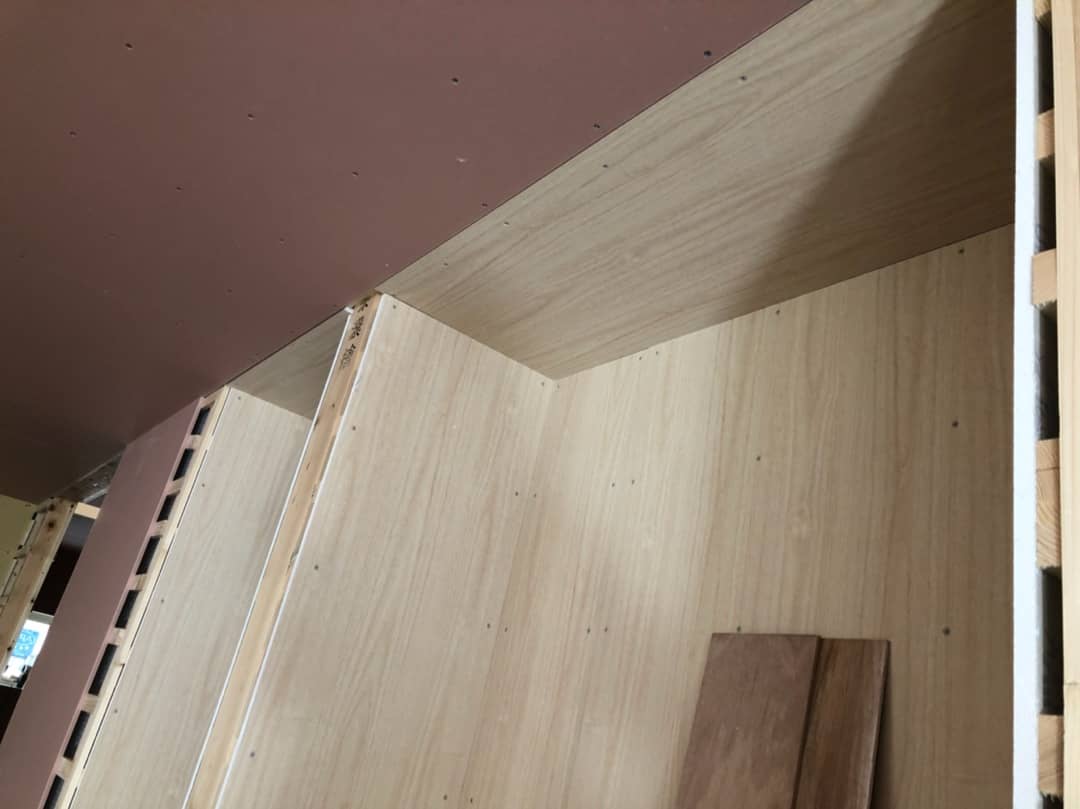 エムズの家では便器の正面や横の壁の上の方にある事が多い収納部分ですが、我が家は正面壁には付けられないそうで計画していた場所とは違う位置に。