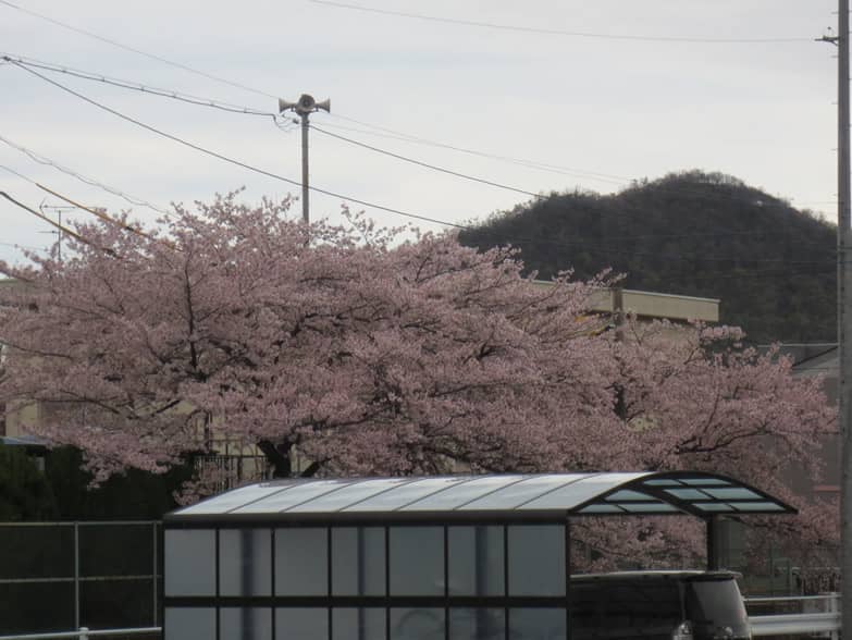 お隣が田んぼなので、少し離れていますがサクラが良くみえます♪