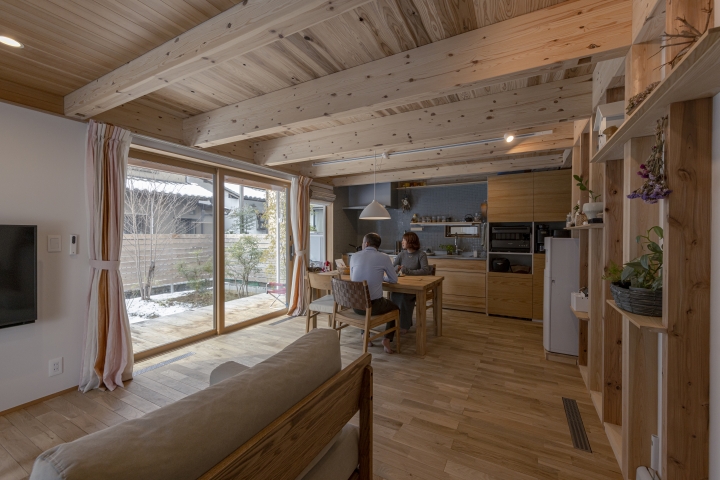 太陽の光だけでも暖かくなる室内では、寒い冬でも薄着・裸足で過ごせます。