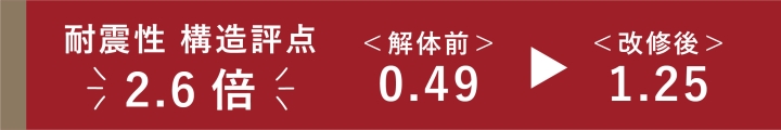 梁・柱の補強や、基礎の強化、耐力壁の増設などの耐震改修をすることで、現在の「新耐震基準」を確保することが可能です。