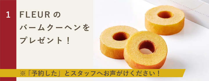 ※事前にご予約いただいた方には限定で、FLEURのバウムクーヘンをプレゼント。