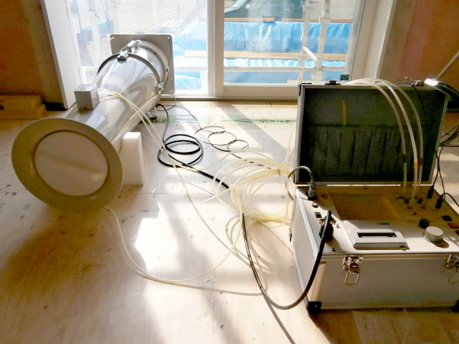 エムズの徹底された丁寧な施工により実現している気密断熱性は、1棟1棟気密測定機械を用いて計測をおこなっています。