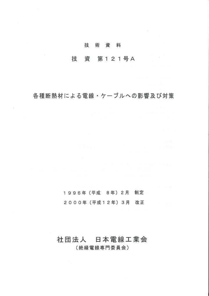 「各種断熱材による電線・ケーブルへの影響及び対策 技術資料 第121号A」