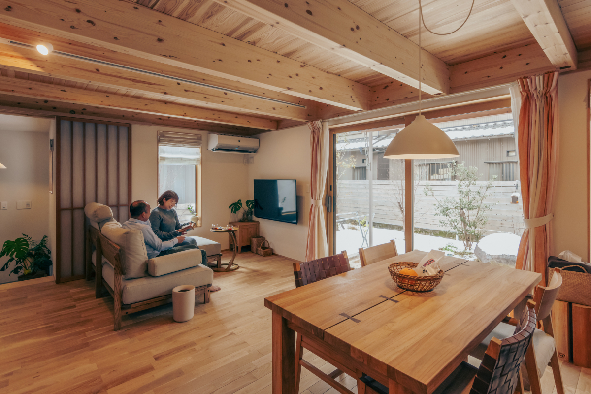 実際にモデルハウス(岐阜市芋島)や完成見学会でも、高断熱・高気密+自然素材仕様の家づくりを体感できます。