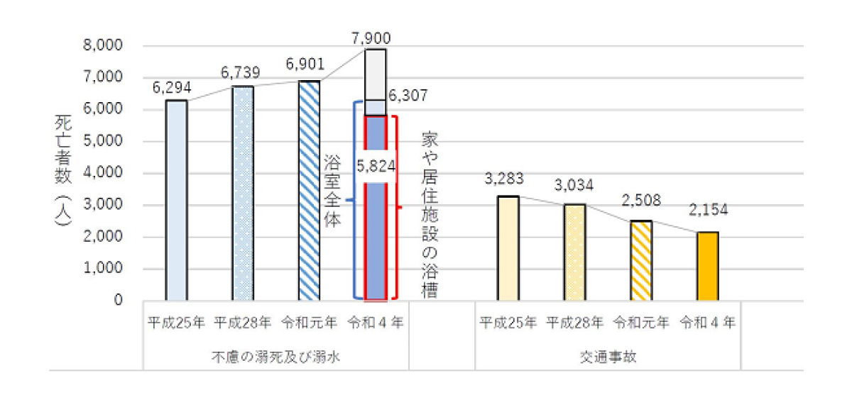 私たちは日頃、交通事故の危険性については意識を向けていますが、実は家の中のお風呂の方が、はるかに多くの尊い命を奪っている可能性があるのです。