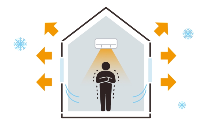 いくら暖房を強くしても、冷たい空気が常に入り込んでは、部屋は暖まりにくく、足元だけが冷えるといったことも起こりがちです。