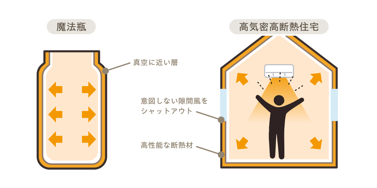 高気密高断熱住宅を分かりやすくイメージするなら、「魔法瓶のような家」を想像してみてください。