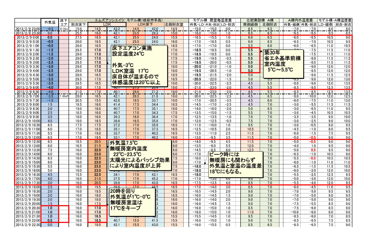 建物の性能によって、これだけ違う実際の温度測定結果。