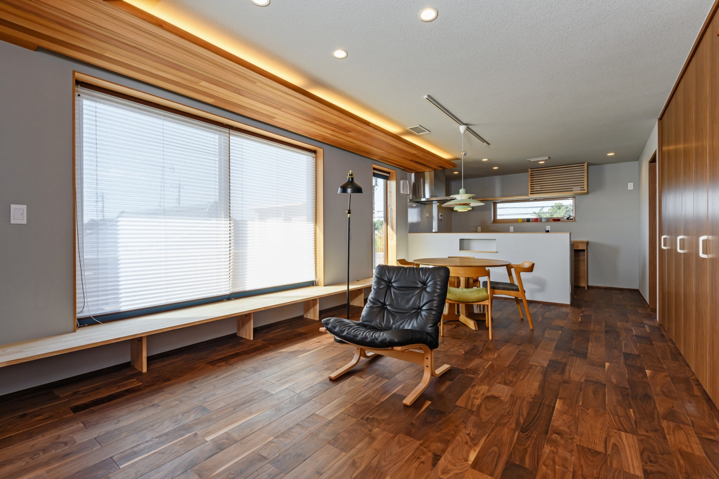 基礎断熱を施した床下空間にエアコンを設置し、そこから送り出された暖かい空気が、床のガラリ(通気口)から自然に上昇して、1階全体をじんわりと暖めます。