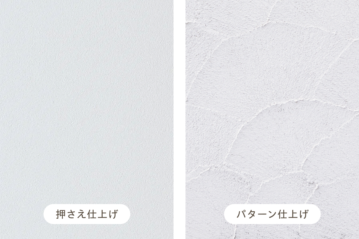 一方、あえてコテ跡を残してラフに仕上げる「パターン仕上げ」は、陰影が生まれて温かみのある雰囲気になり、ナチュラルな洋風の空間や南欧風のインテリアにぴったりです。