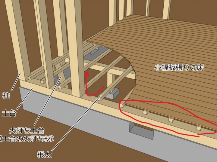 現在と昔の家の構造の組成の方法も違うところが多くあり、代表的なものでは、床の構造。