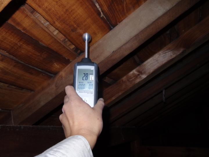 小屋裏の木構造の含水率調査や柱や壁の傾きの調査