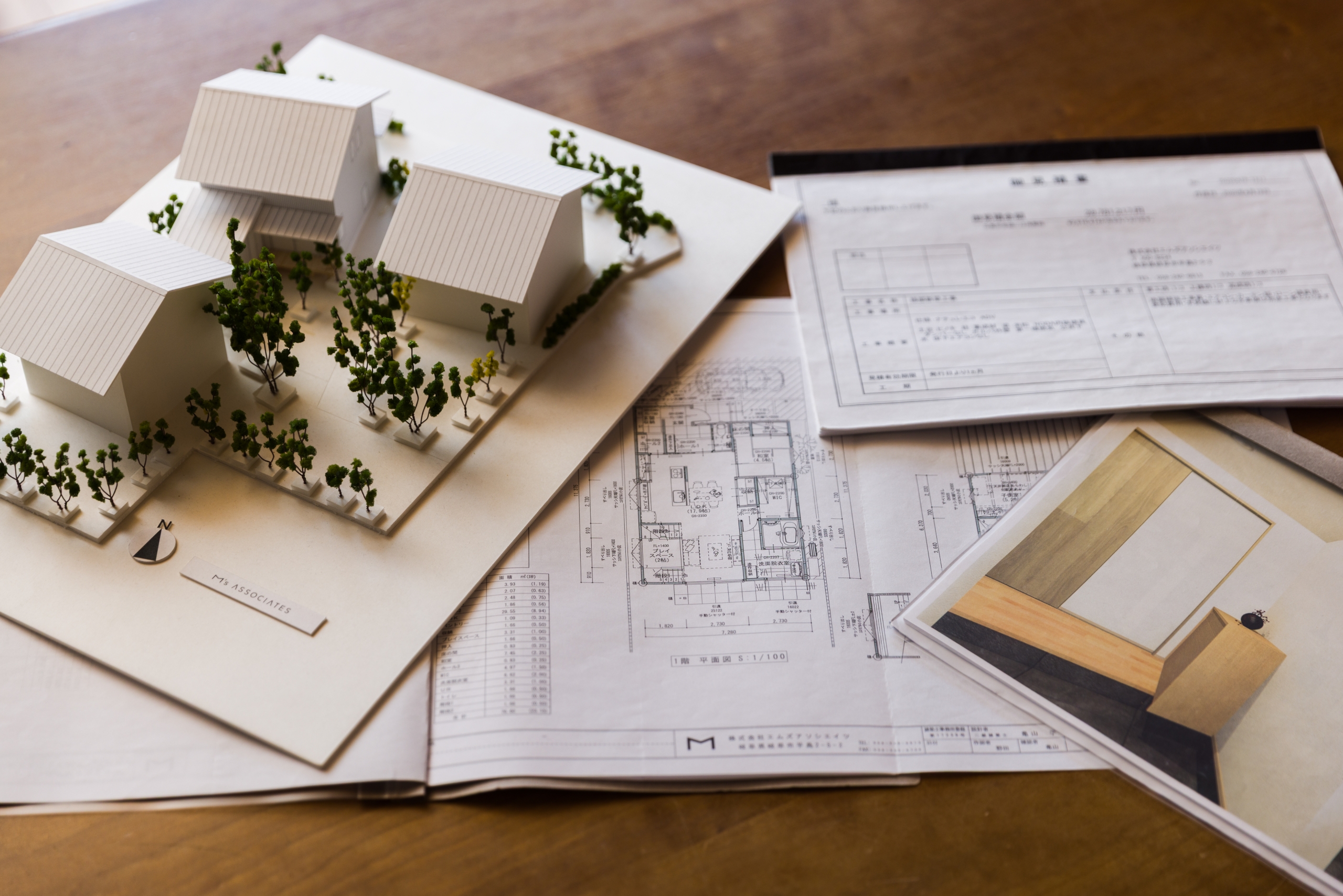 契約前から設計士が直接対応し、平面図(間取り図)、CGパース、1/100スケールの精密な模型をご提供します。さらに、外構工事や細かな備品まで含めた詳細な見積書を作成し、消費税を含めた最終的な引渡し価格を明確に把握できます。