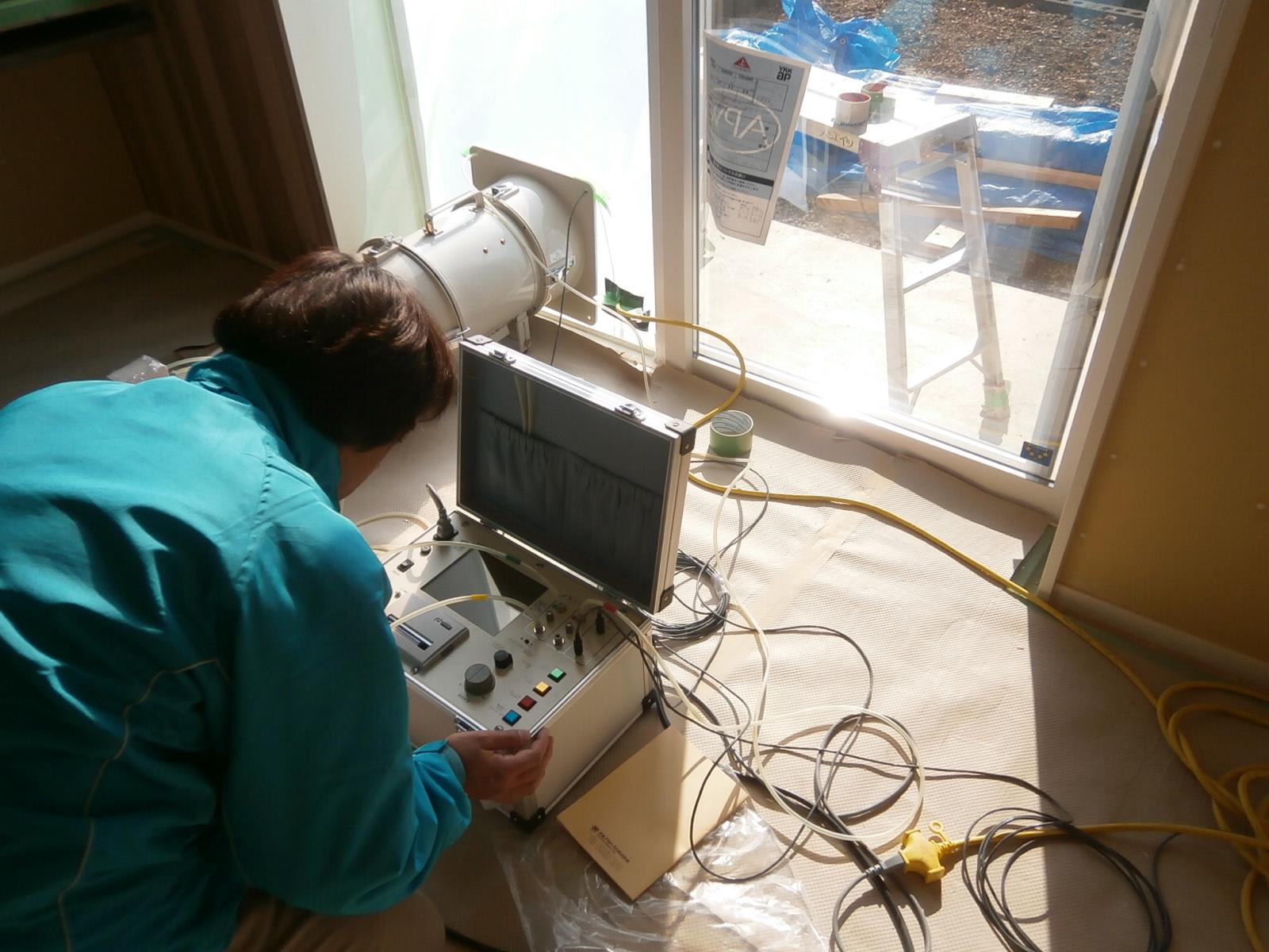 断熱材や気密シートを施工し終えた段階(石膏ボードを貼る前)で測定すれば、問題があればその場で補修して再測定できます。