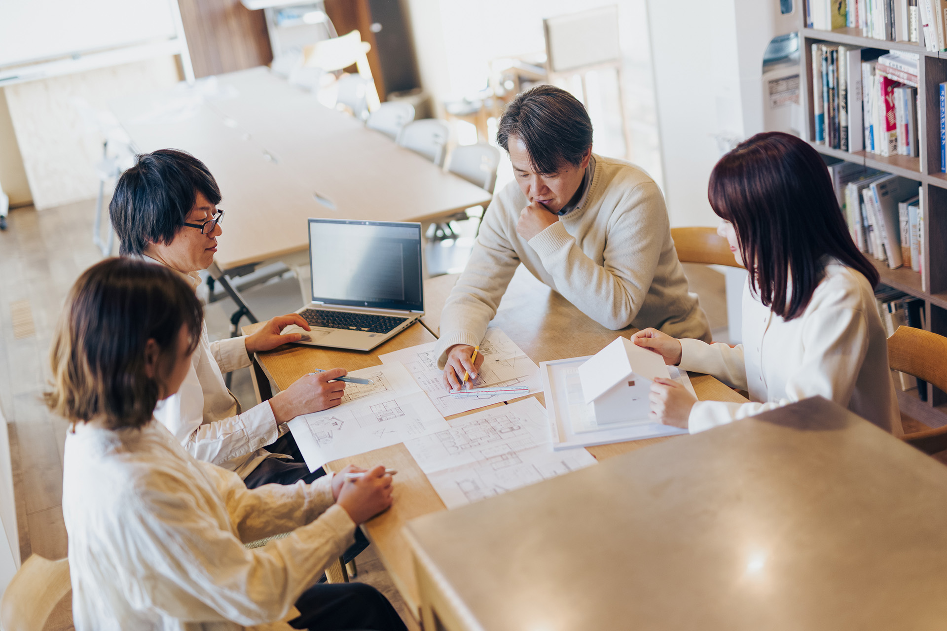 契約前から設計士が直接対応し、平面図(間取り図)、CGパース、1/100スケールの精密な模型をご提供します。さらに、外構工事や細かな備品まで含めた詳細な見積書を作成し、消費税を含めた最終的な引渡し価格を明確に把握できます。