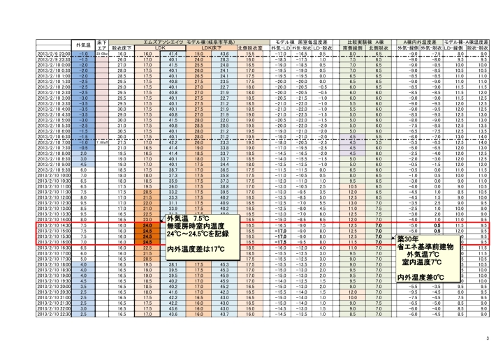 では、実際に住まいの断熱性能が違うお住まいの実際の室内温度の計測結果をご紹介します。