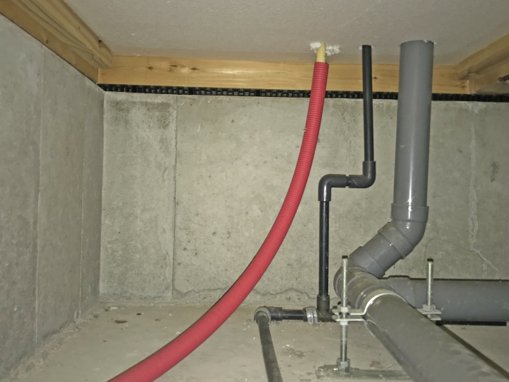床断熱では、水道や排水の配管の立ち上がり部分の床の断熱材に穴を明ける必要があります。