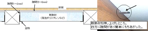 さらに言えば、床断熱の場合には、床の骨組みの間に断熱材をはめ込むため、どうしても軽微な隙間が多数にわたり発生します。