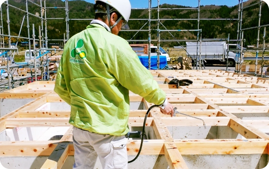 ※1.2とも弊社で扱いがありますので、詳しくは担当者までお問い合わせください。 - 防腐・防蟻の不要な木材:桧・ヒバなど薬剤処理の必要のない木材で土台・大引をお使いください。