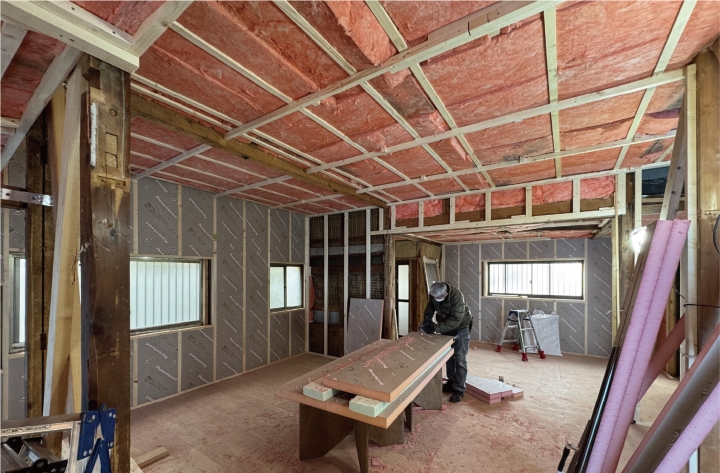 築55年の平屋が、エアコン一台でも快適に過ごせるお住まいへ生まれ変わる途中の、お住まいの構造状態をご見学いただけます。