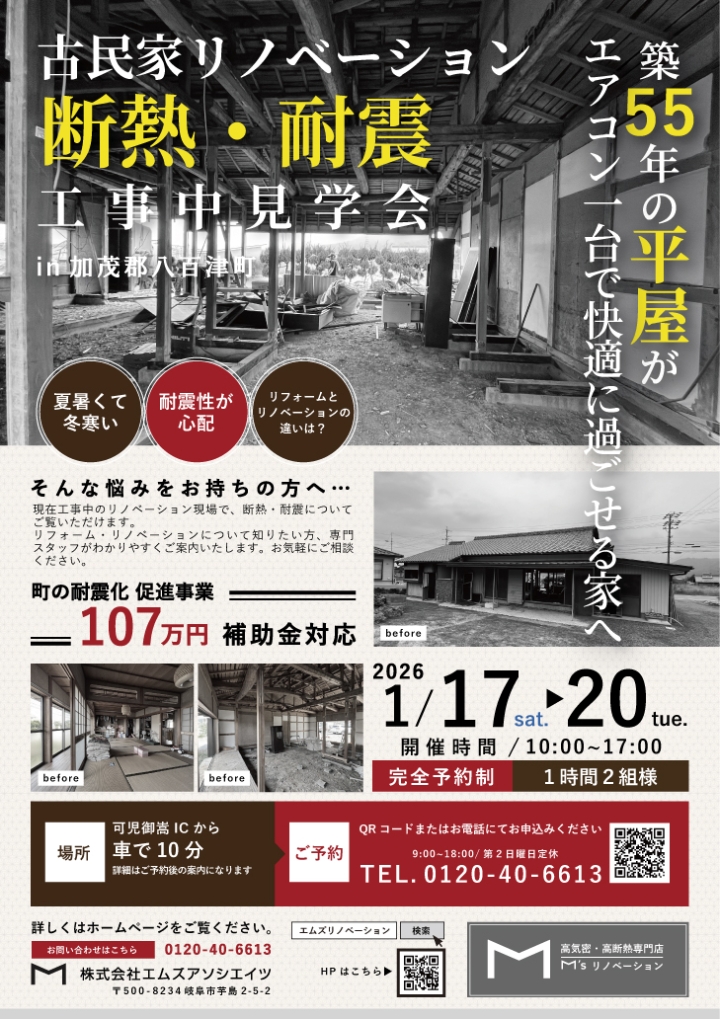 【リノベーション】築55年 平屋古民家 断熱・耐震リノベ構造見学会(施工中見学会) in 加茂郡八百津町