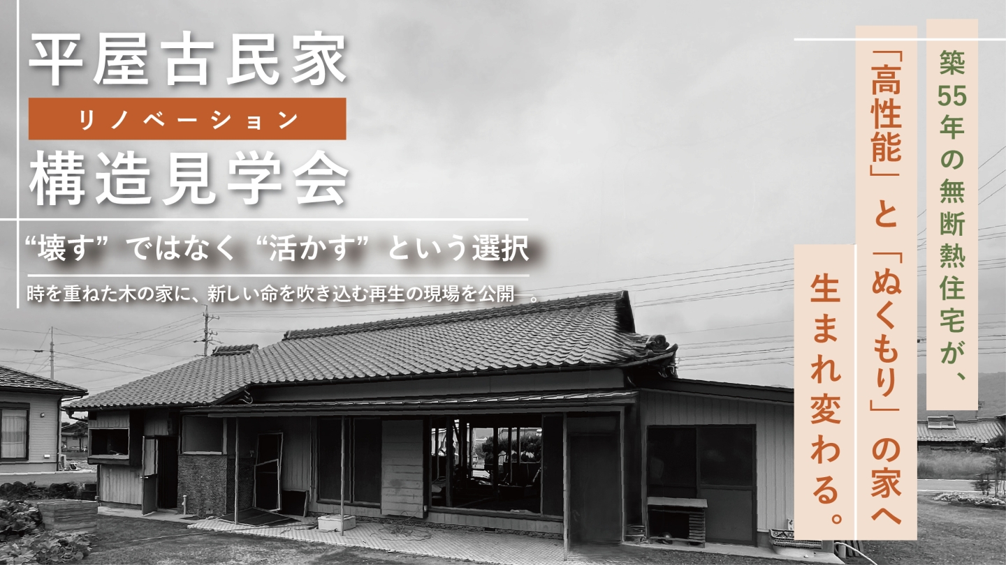 築55年の平屋の古民家をリノベーションした実際の施工中のお住まいをご見学いただける、【リノベーション構造見学会】を開催いたします!