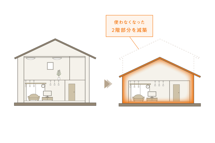 | フル断熱リノベ | 1階断熱リノベ | ゾーン断熱リノベ | 減築断熱リノベ | |